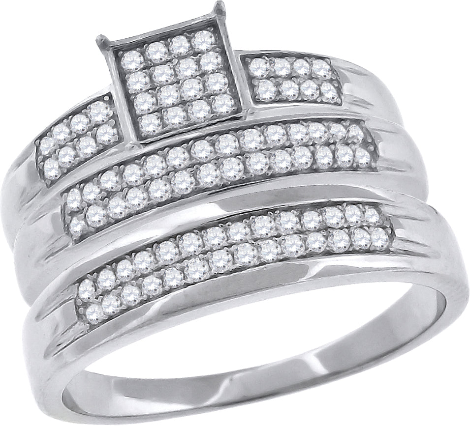 Keene Jewelers 925 Sterling Silver His & Hers Cubic-Zirconia Square Head Trio Ring Set Size 6