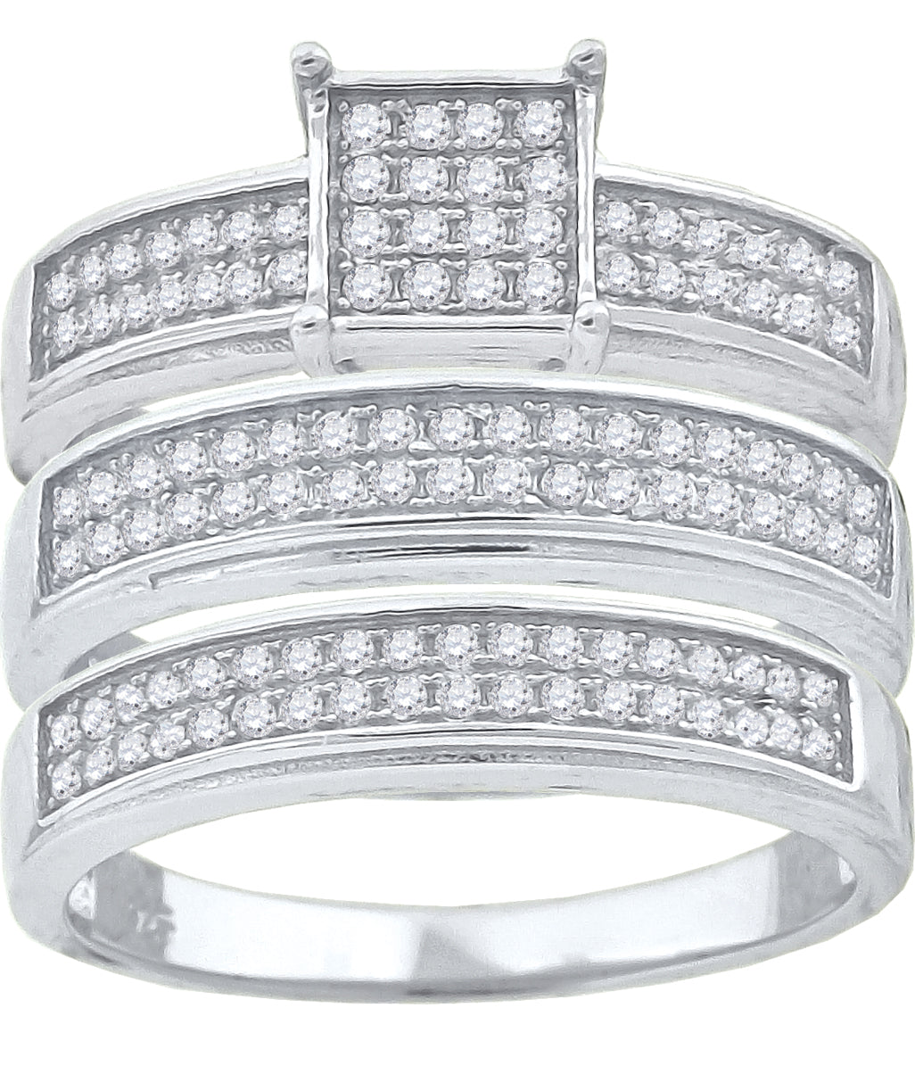 Keene Jewelers 925 Sterling Silver His & Hers Cubic-Zirconia Square Head Trio Ring Set Size 7