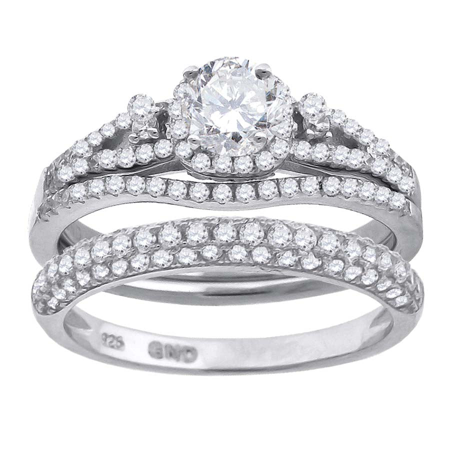 Keene Jewelers 925 Sterling Silver Womens Cubic Zirconia Halo Bridal Trio Set Ring Size 6