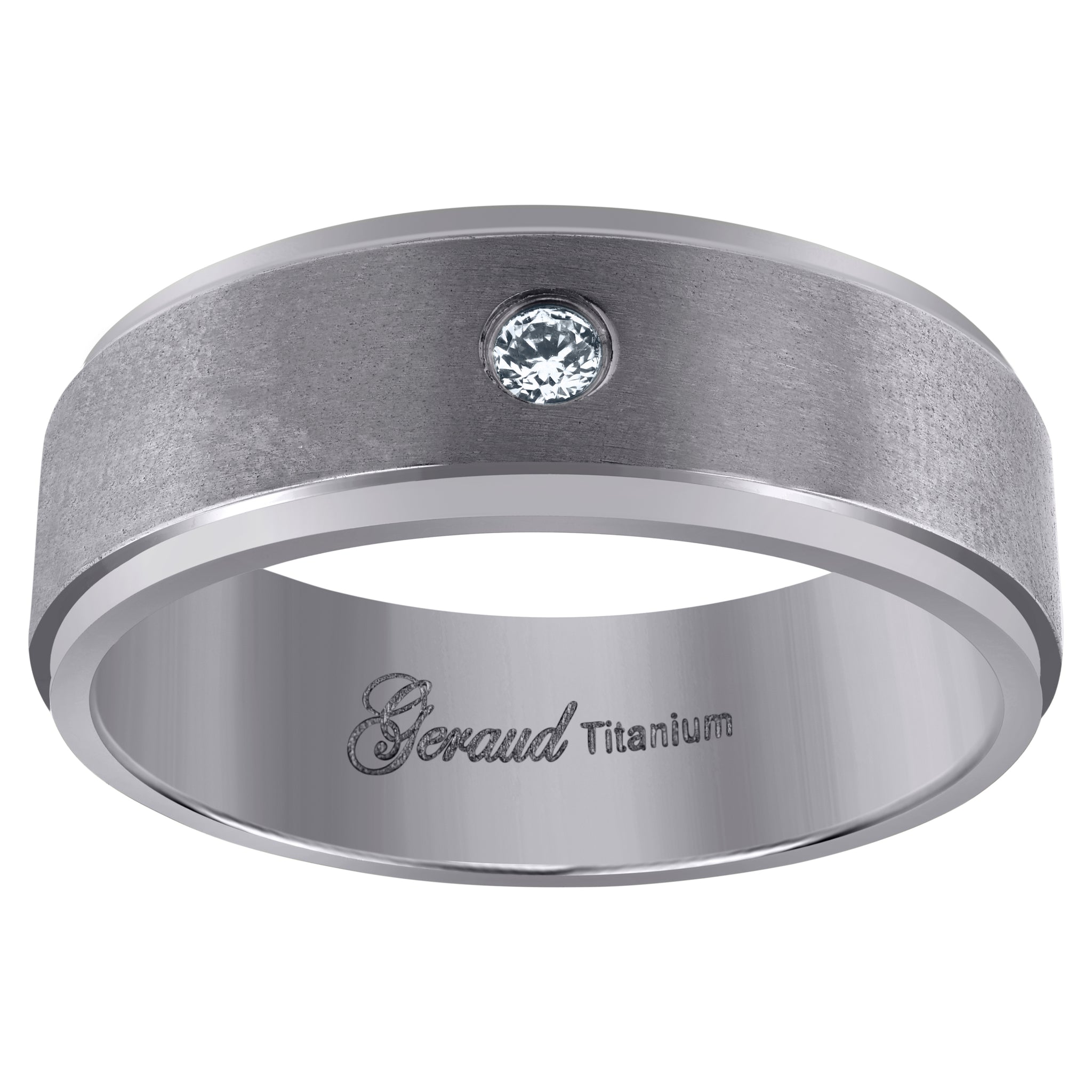 Keene Jewelers Titanium Mens Cubic Zirconia CZ Brushed Ridged Edge Comfort Fit Wedding Band 8mm