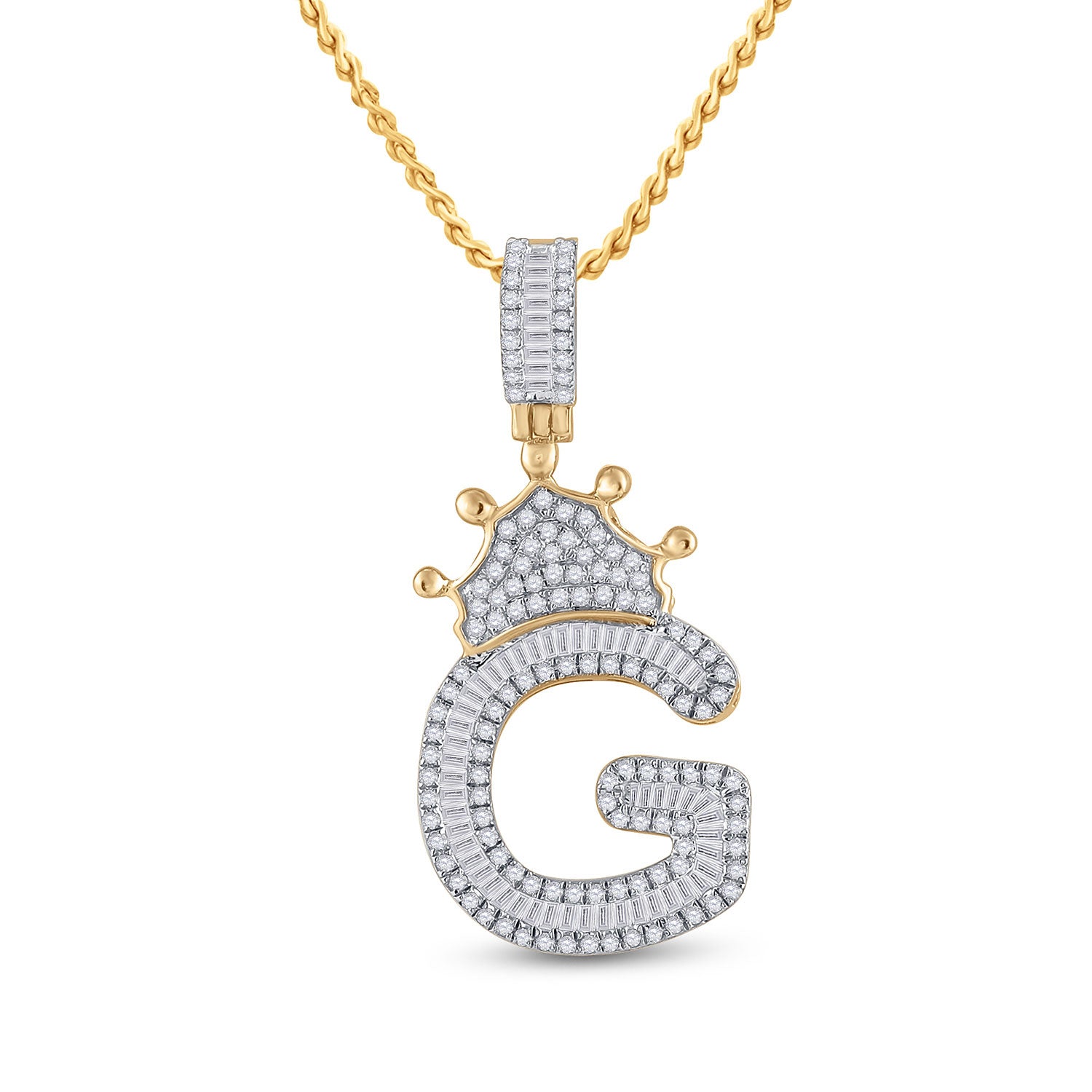 Keene Jewelers 10kt Yellow Gold Mens Baguette Diamond Crown G Letter Charm Pendant 3/4 Cttw