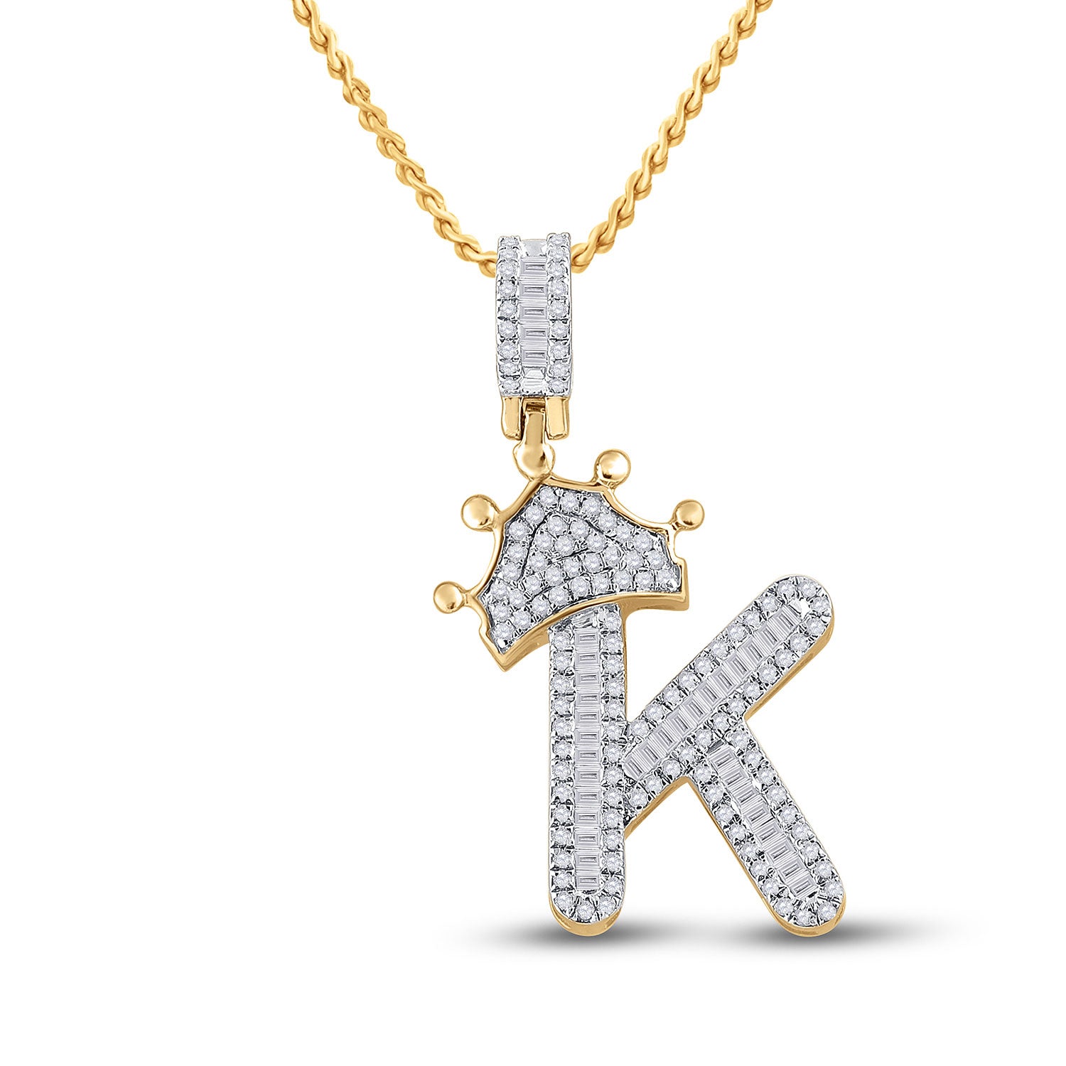 Keene Jewelers 10kt Yellow Gold Mens Baguette Diamond Crown K Letter Charm Pendant 5/8 Cttw