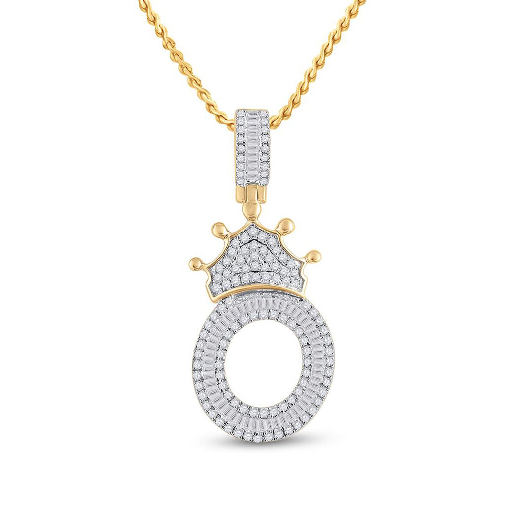 Keene Jewelers 10kt Yellow Gold Mens Baguette Diamond Crown O Letter Charm Pendant 3/4 Cttw