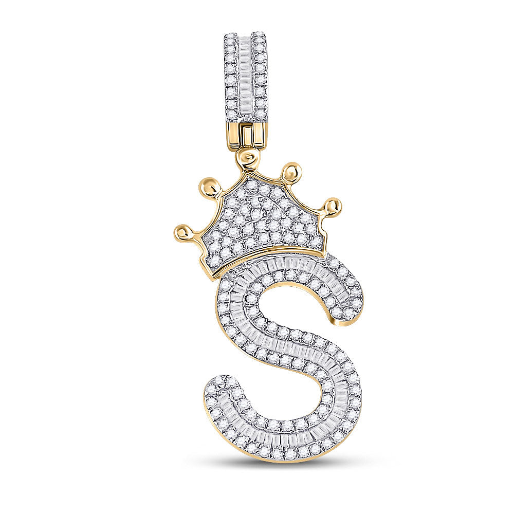 Keene Jewelers 10kt Yellow Gold Mens Baguette Diamond Crown S Letter Charm Pendant 3/4 Cttw