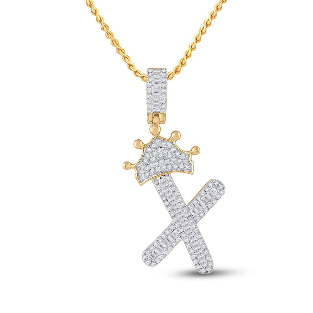 Keene Jewelers 10kt Yellow Gold Mens Baguette Diamond Crown X Letter Charm Pendant 5/8 Cttw