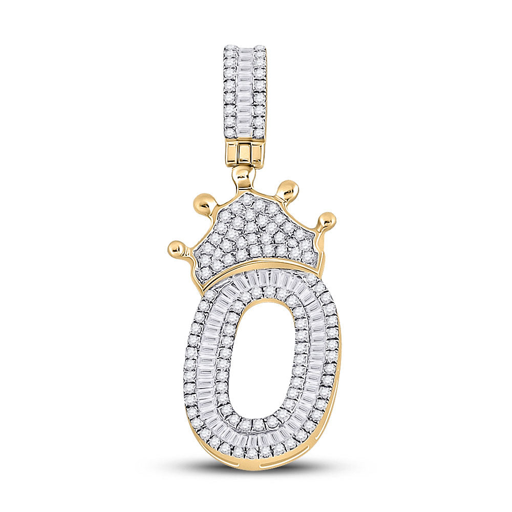 Keene Jewelers 10kt Yellow Gold Mens Baguette Diamond Number 0 Crown Charm Pendant 3/4 Cttw