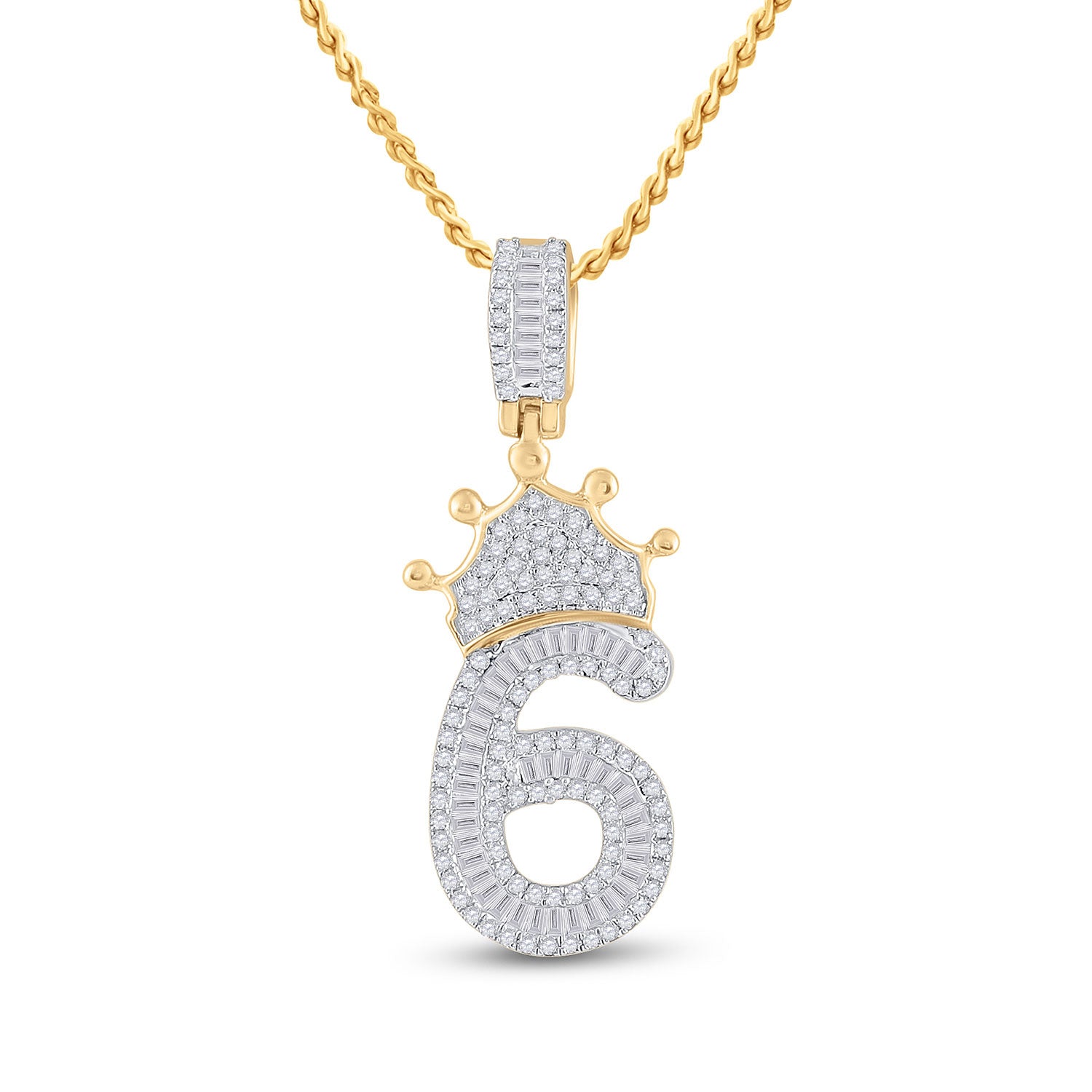 Keene Jewelers 10kt Yellow Gold Mens Baguette Diamond Number 6 Crown Charm Pendant 3/4 Cttw