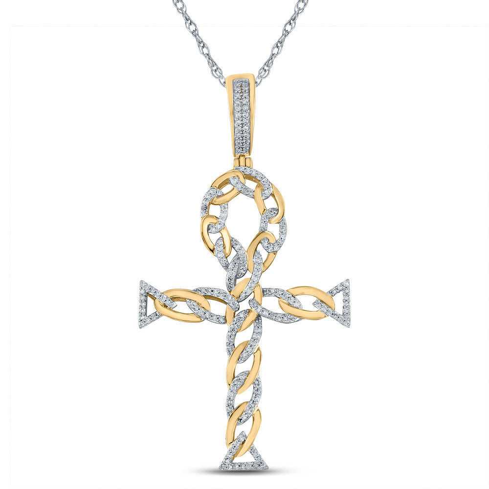 Keene Jewelers 10kt Yellow Gold Mens Round Diamond Ankh Cross Charm Pendant 3/8 Cttw