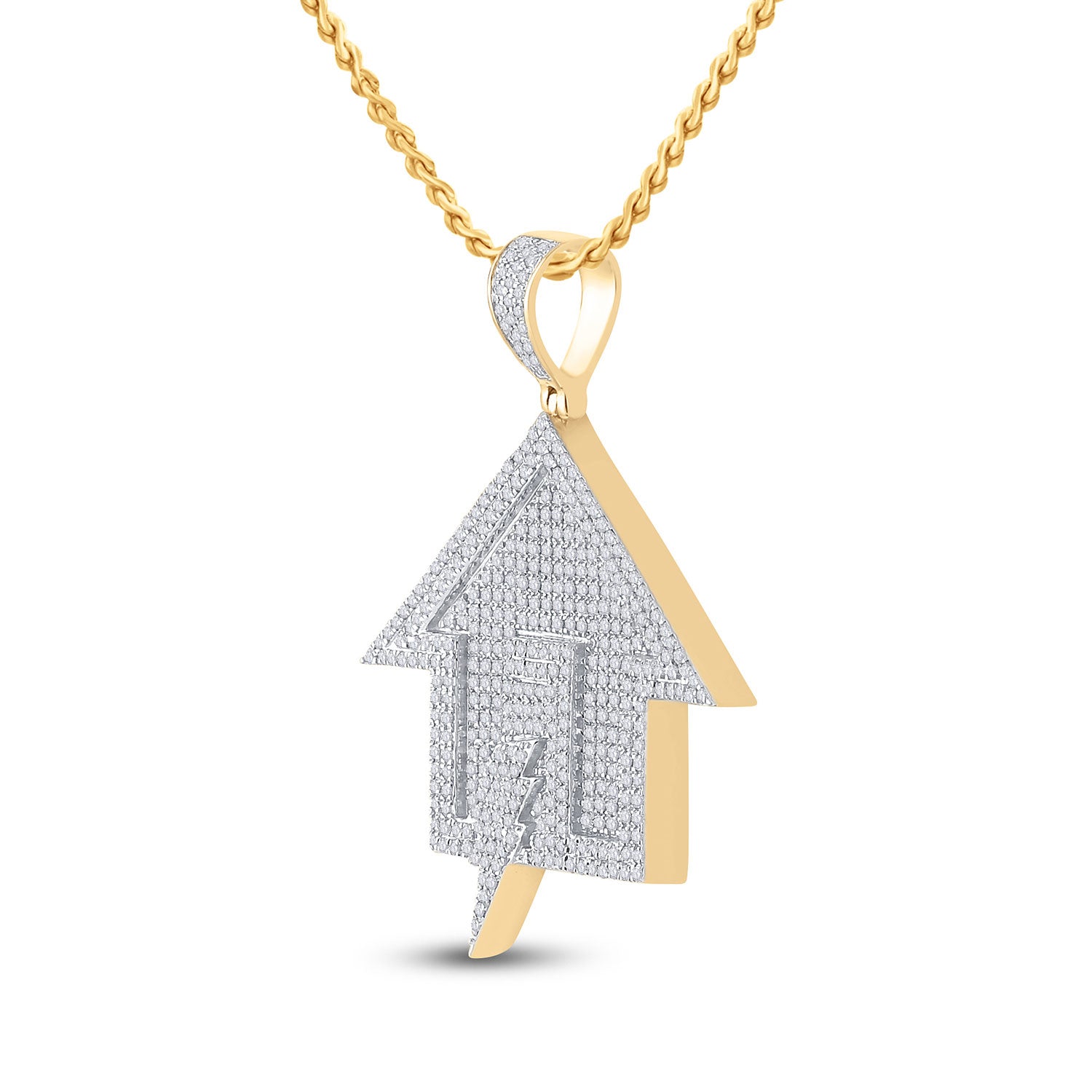 Keene Jewelers 10kt Yellow Gold Mens Round Diamond Bolt Trap House Charm Pendant 1-1/4 Cttw