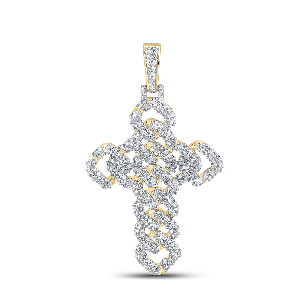 Keene Jewelers 10kt Yellow Gold Mens Round Diamond Cuban Link Cross Charm Pendant 1-3/4 Cttw