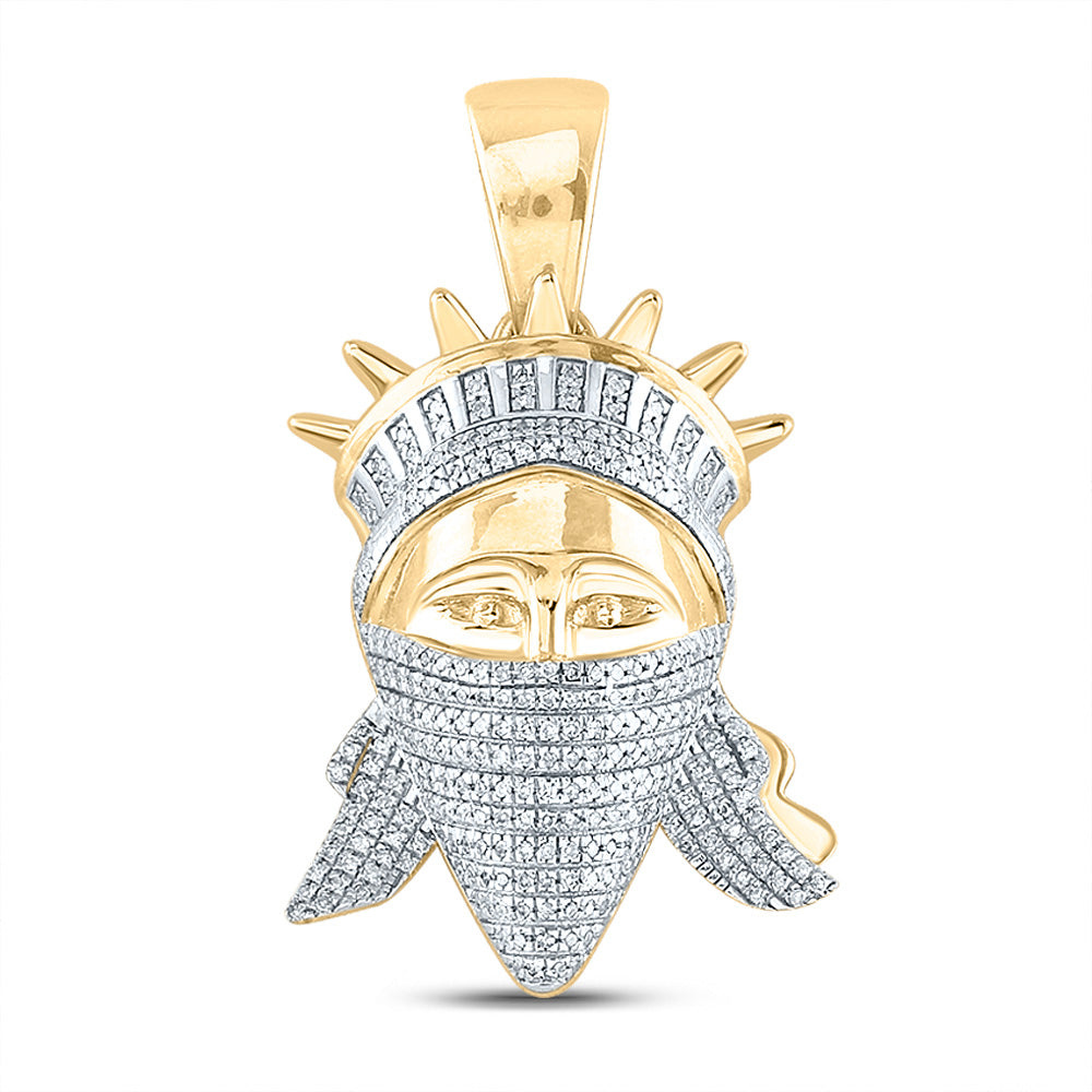 Keene Jewelers 10kt Yellow Gold Mens Round Diamond Lady Liberty Face Charm Pendant 5/8 Cttw