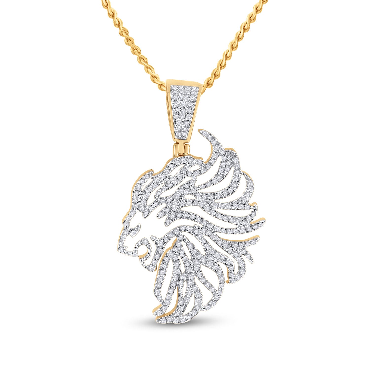 Keene Jewelers 10kt Yellow Gold Mens Round Diamond Lion Mane Charm Pendant 3/4 Cttw