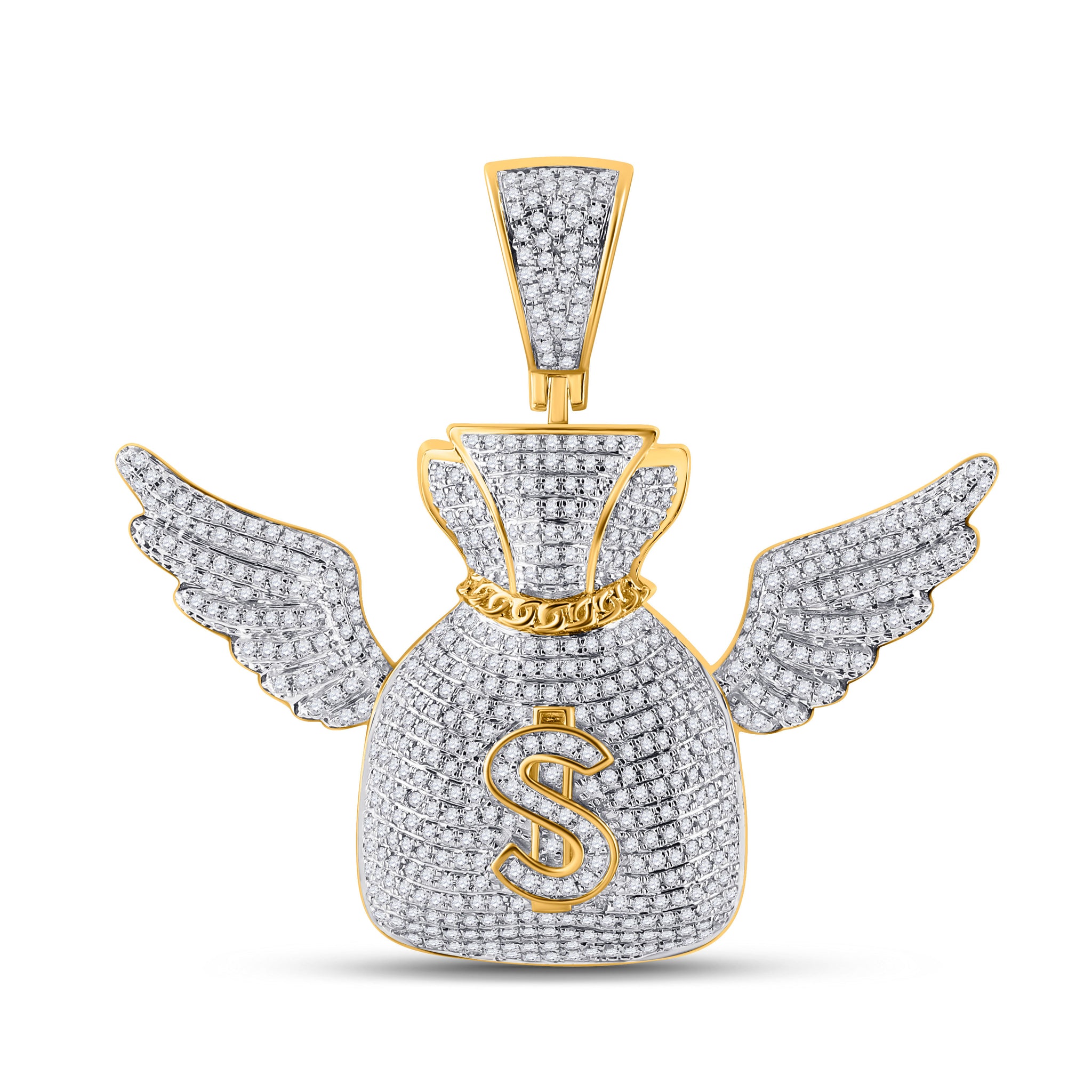 Keene Jewelers 10kt Yellow Gold Mens Round Diamond Money Bag Wings Charm Pendant 1-1/2 Cttw