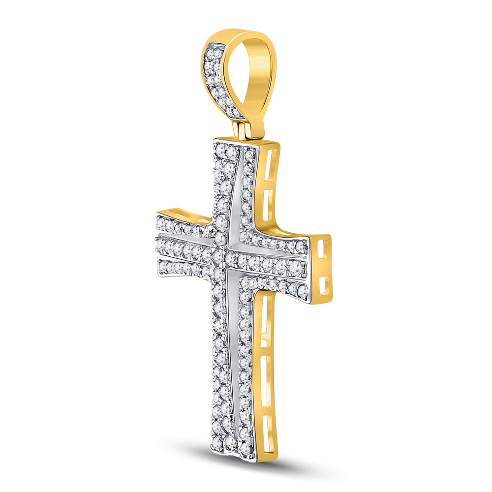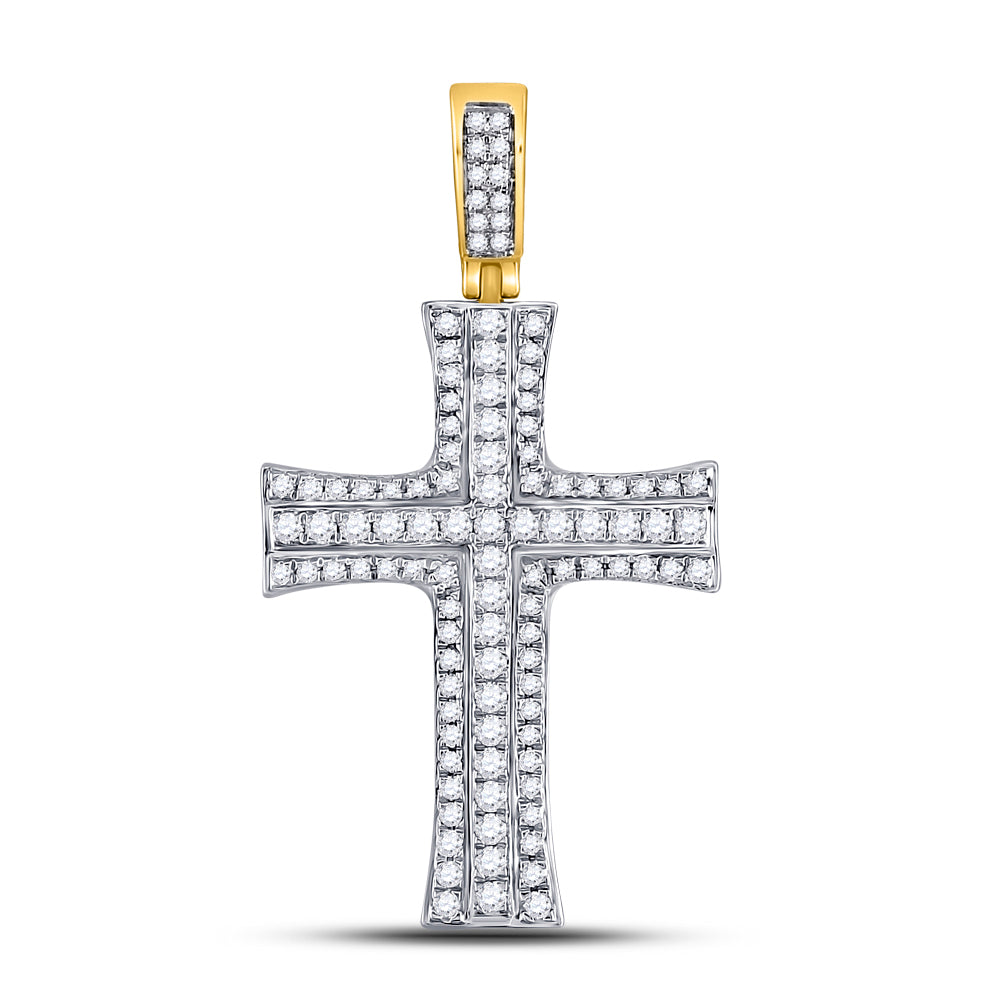Keene Jewelers 14kt Yellow Gold Mens Round Diamond Cross Charm Pendant 1-1/2 Cttw