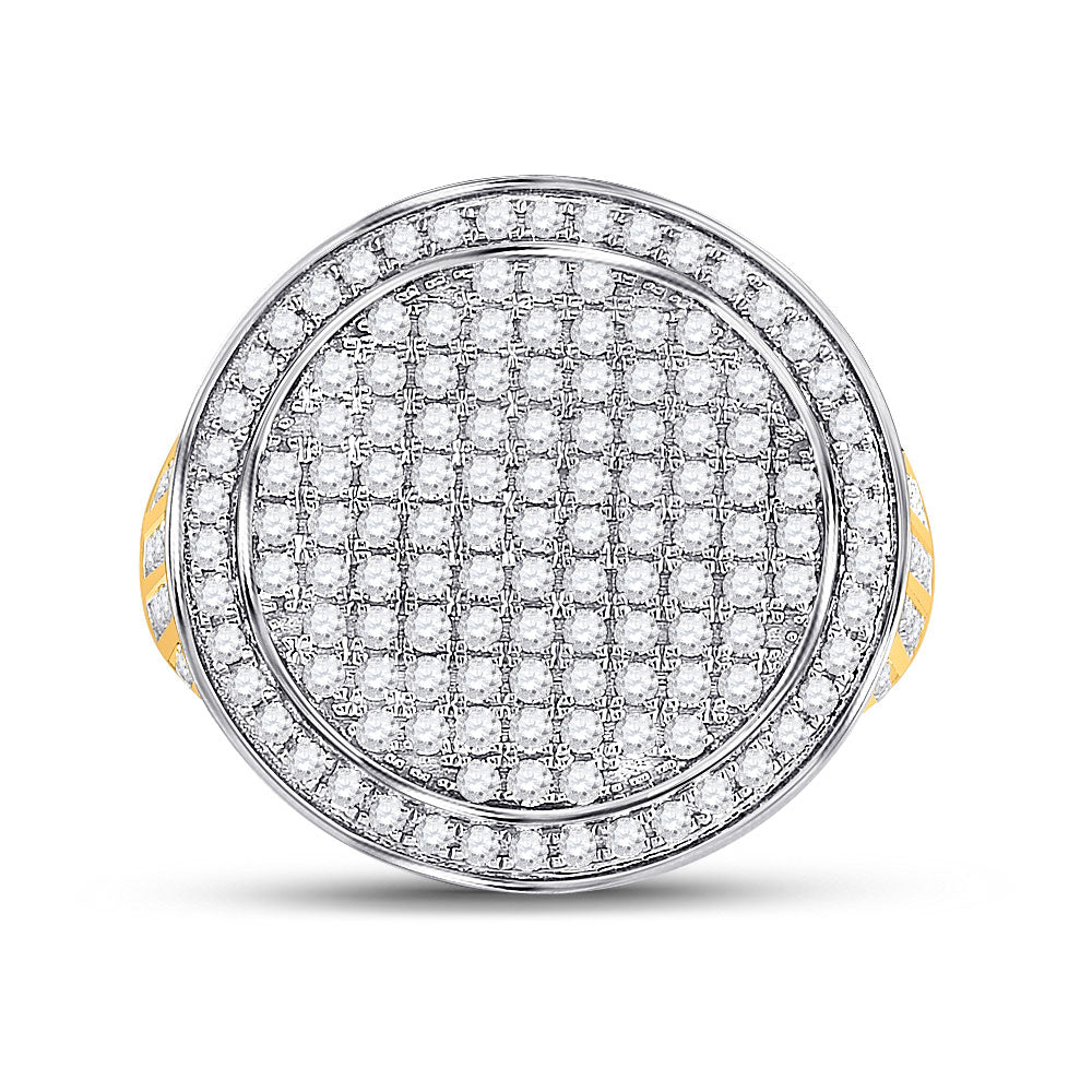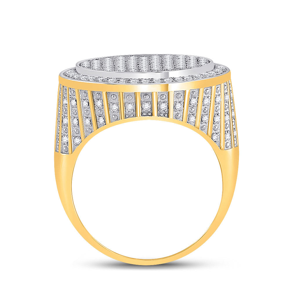 Keene Jewelers 14kt Yellow Gold Mens Round Diamond Circle Frame Cluster Ring 1-1/2 Cttw