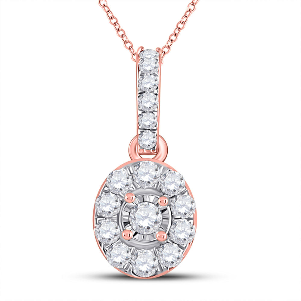 Keene Jewelers 10kt Rose Gold Womens Round Diamond Oval Pendant 1/5 Cttw