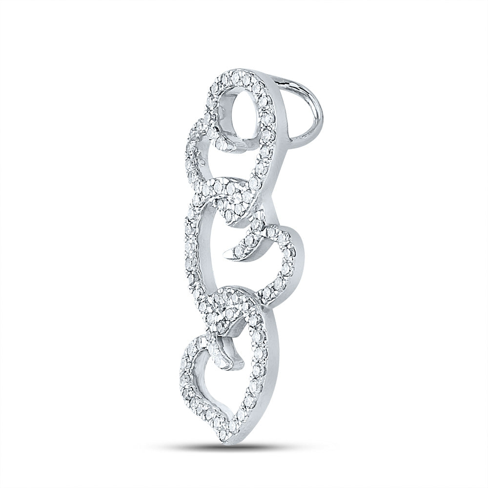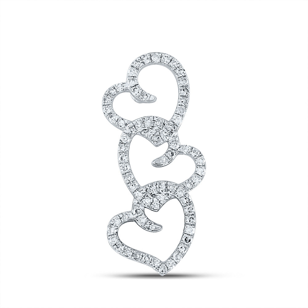 Keene Jewelers 10kt White Gold Womens Round Diamond Triple Heart Pendant 1/4 Cttw