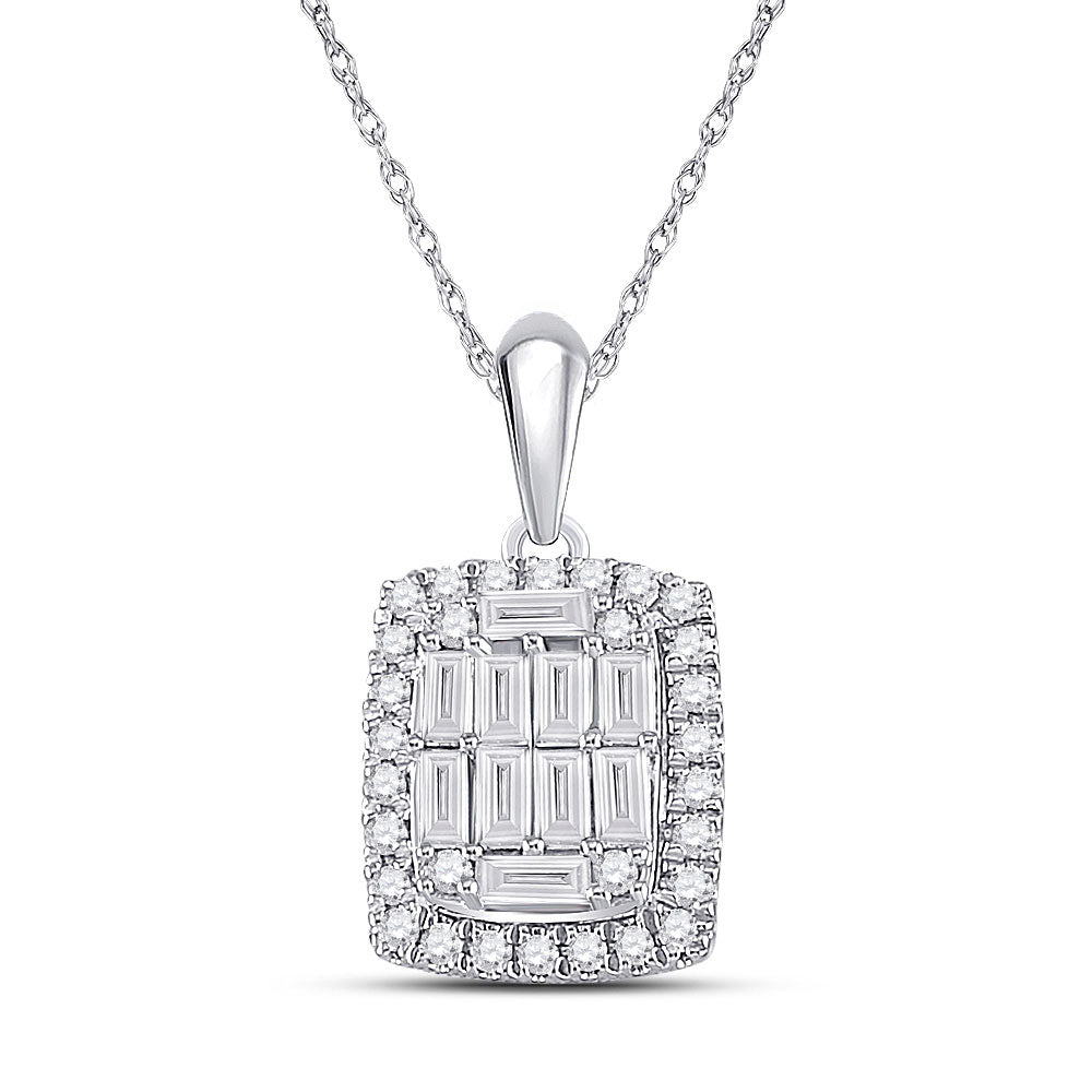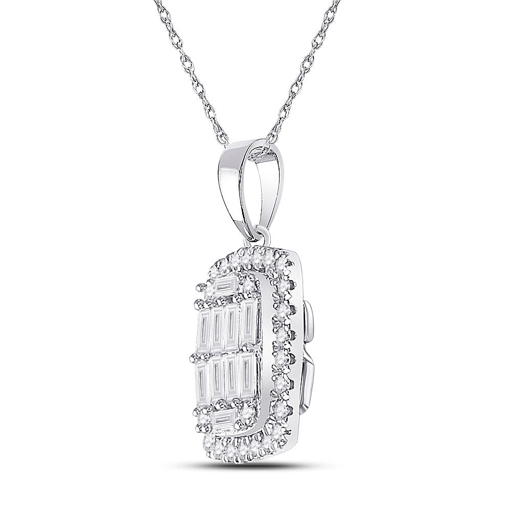 Keene Jewelers 14kt White Gold Womens Baguette Diamond Fashion Pendant 1/2 Cttw
