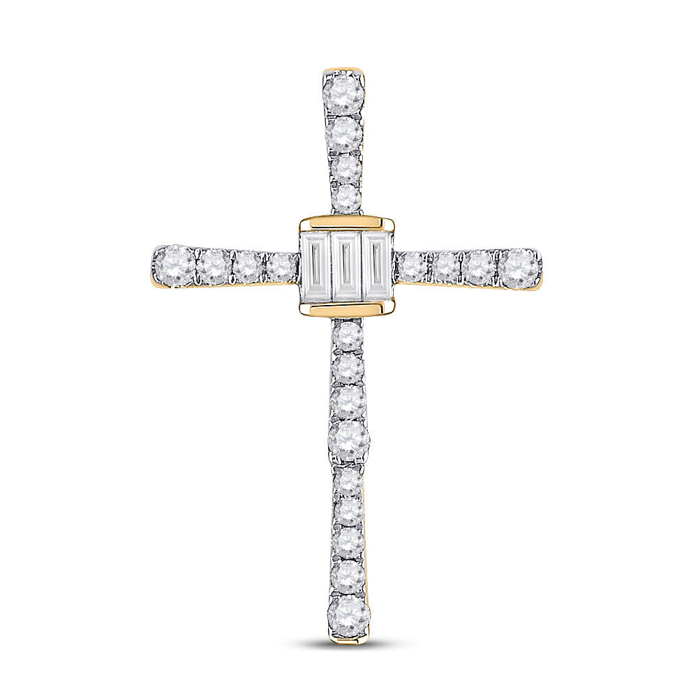 Keene Jewelers 14kt Yellow Gold Womens Baguette Round Diamond Cross Pendant 5/8 Cttw