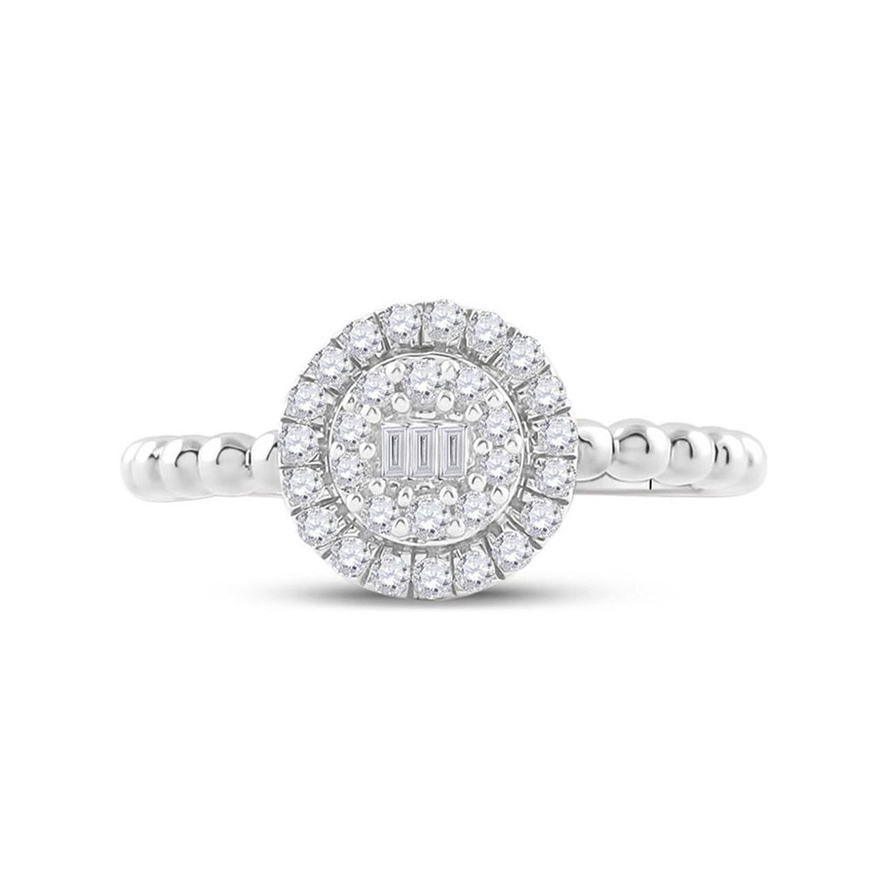 Keene Jewelers 10kt White Gold Womens Baguette Diamond Circle Cluster Ring 1/4 Cttw