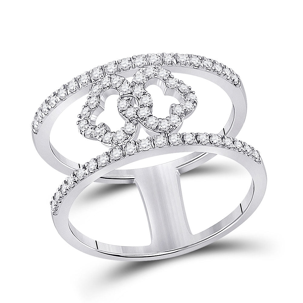 Keene Jewelers 10kt White Gold Womens Round Diamond Clove Negative Space Fashion Ring 3/8 Cttw