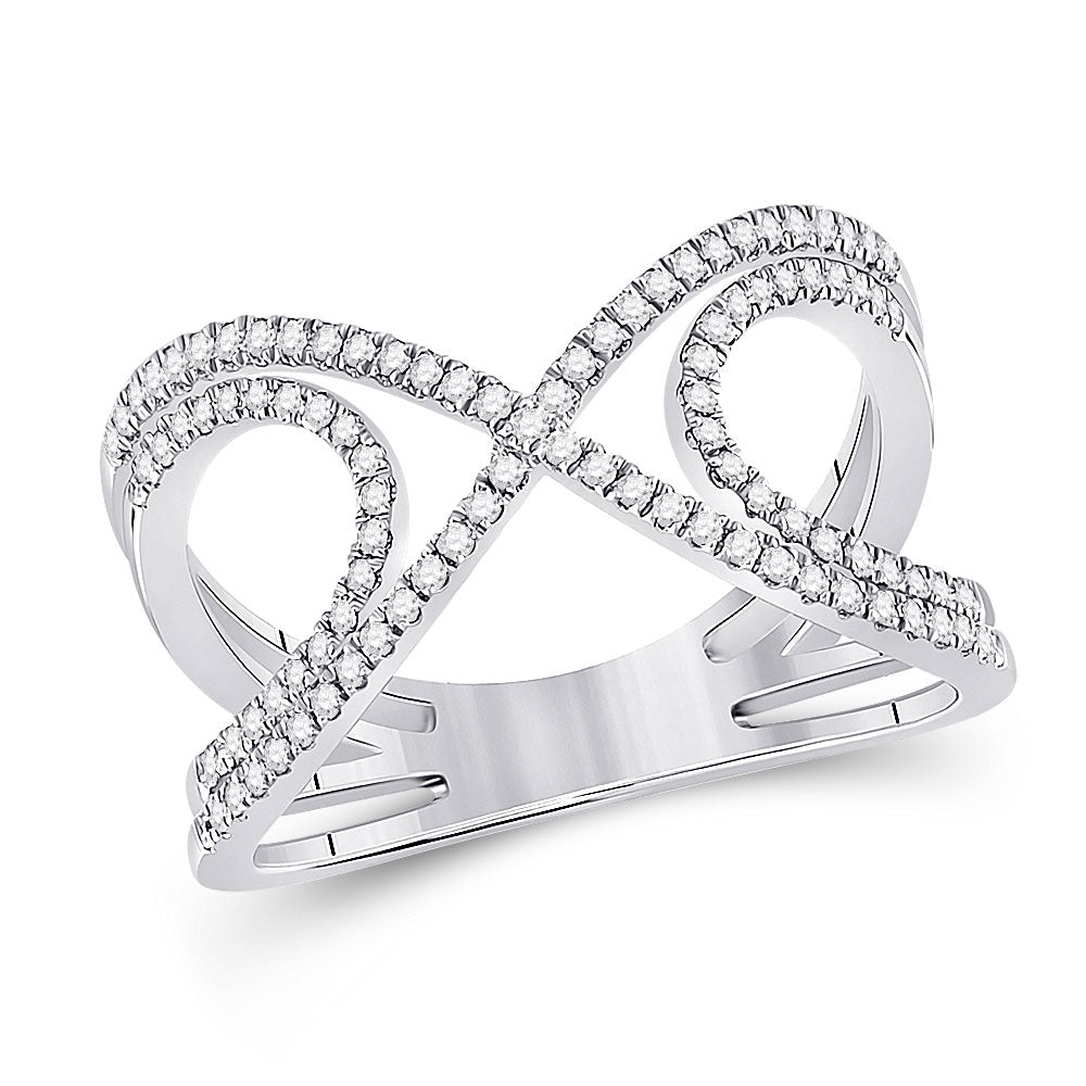 Keene Jewelers 10kt White Gold Womens Round Diamond Crossover Fashion Ring 1/3 Cttw