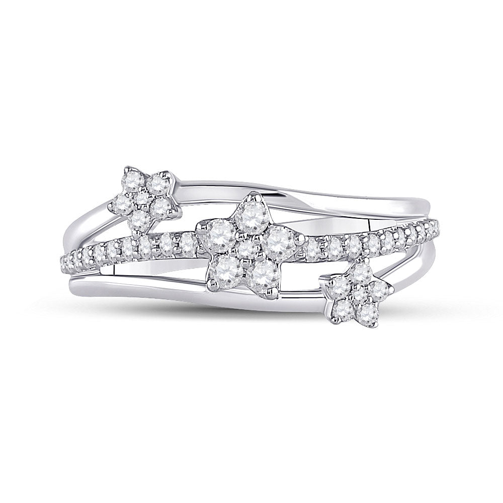 Keene Jewelers 10kt White Gold Womens Round Diamond Flower Star Band Ring 1/3 Cttw