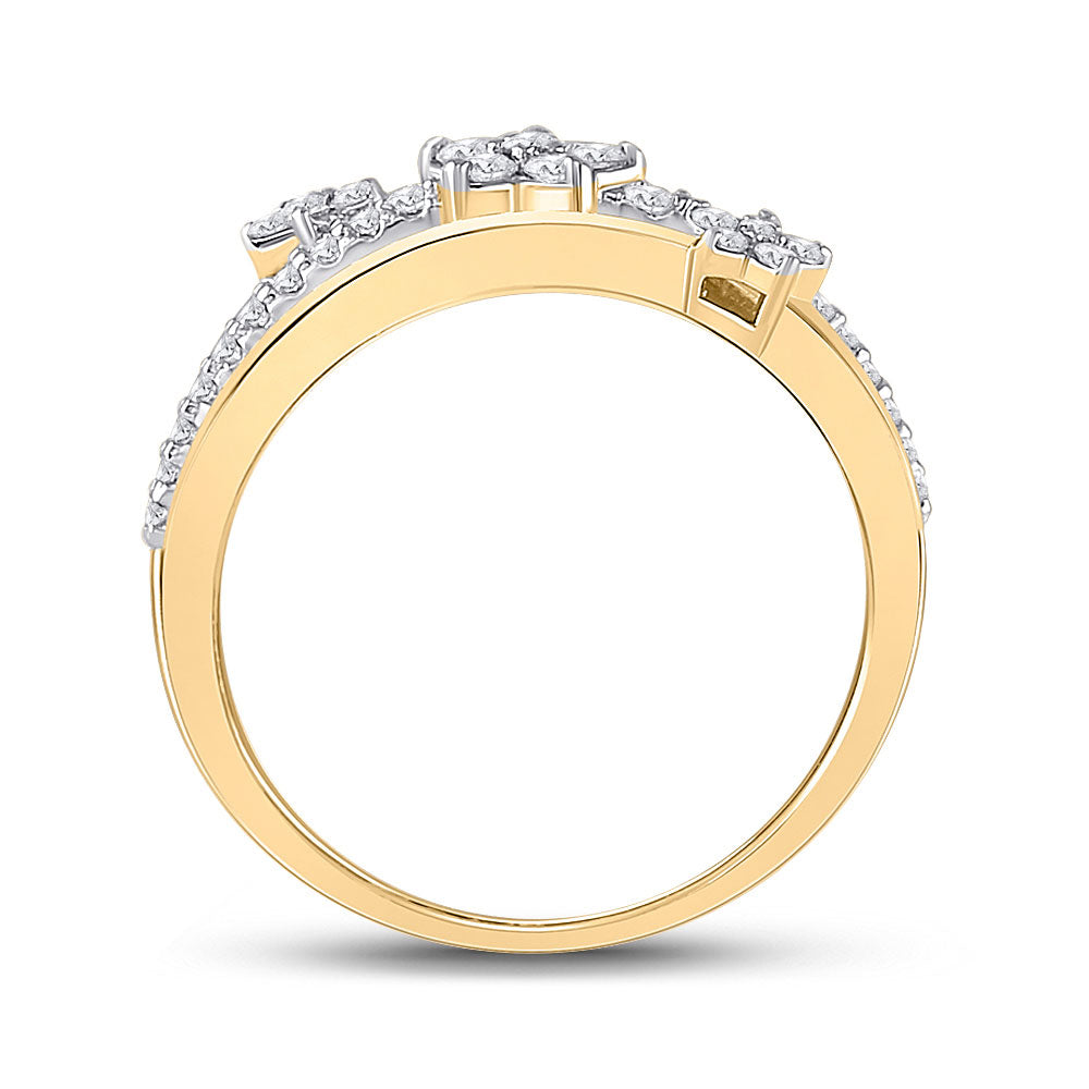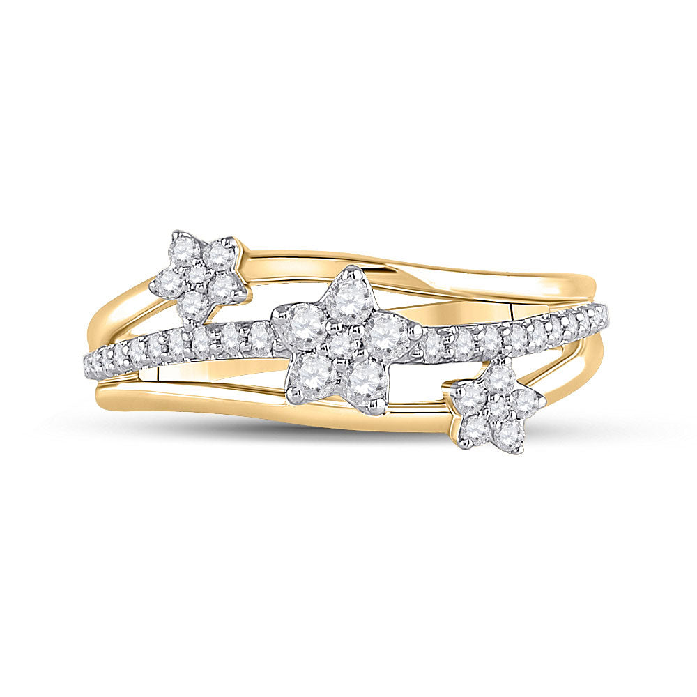 Keene Jewelers 10kt Yellow Gold Womens Round Diamond Flower Star Band Ring 1/3 Cttw