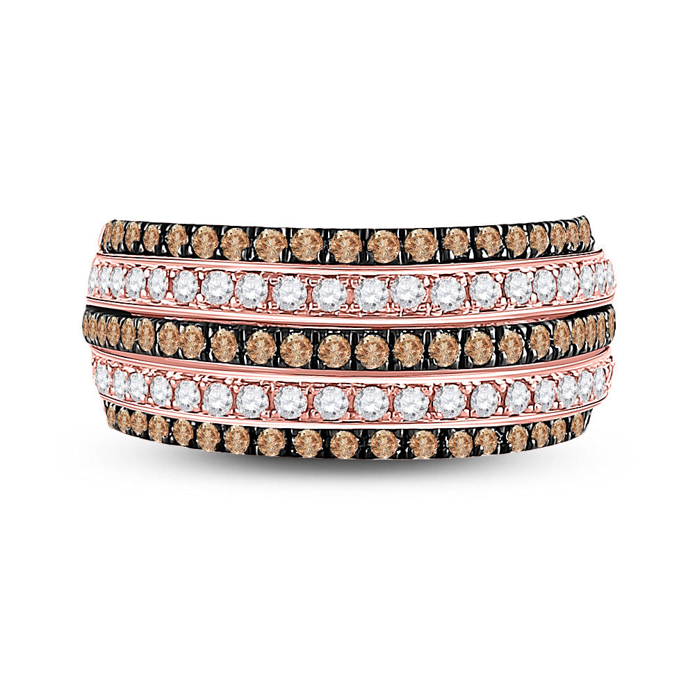 Keene Jewelers 14kt Rose Gold Womens Round Brown Diamond Stripe Band Ring 1 Cttw