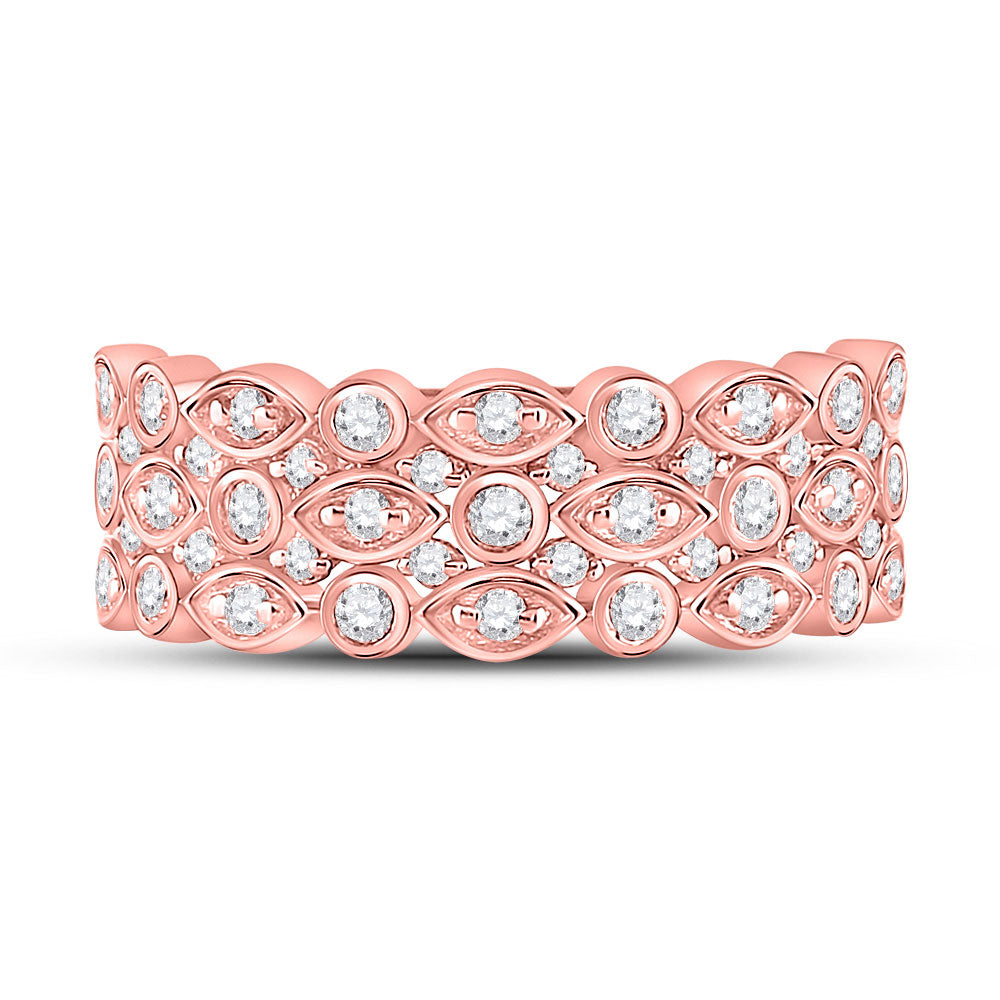 Keene Jewelers 14kt Rose Gold Womens Round Diamond 3-Row Marquise Dot Band Ring 3/4 Cttw
