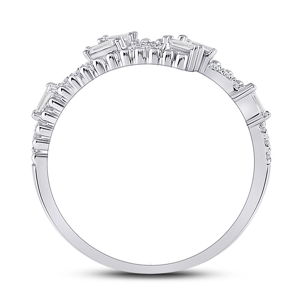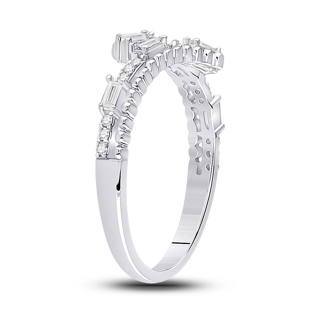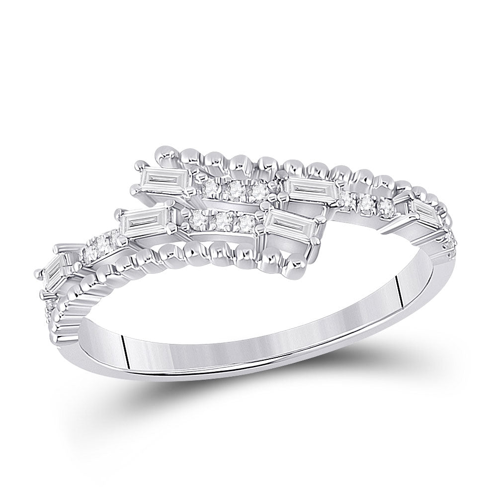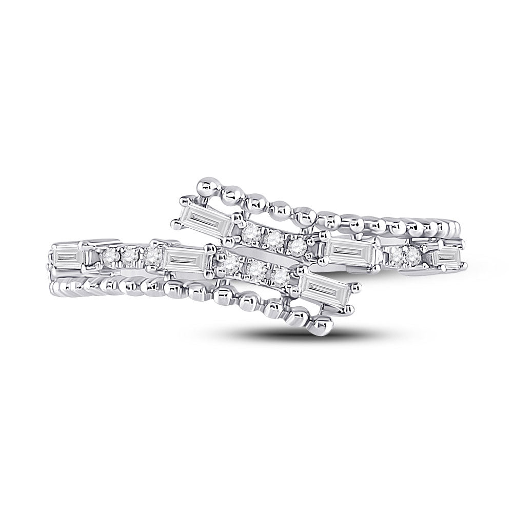 Keene Jewelers 14kt White Gold Womens Baguette Diamond Bypass Band Ring 1/5 Cttw