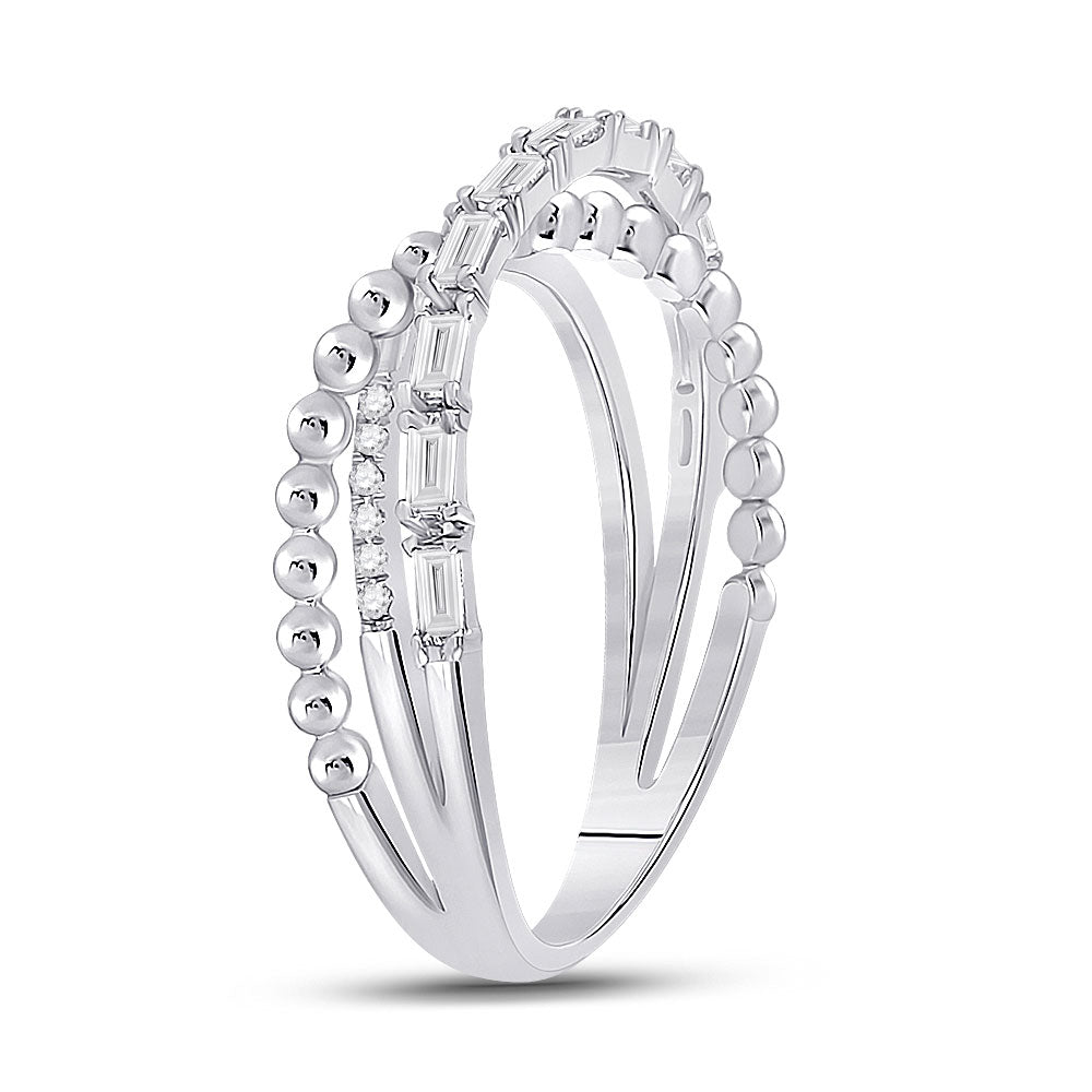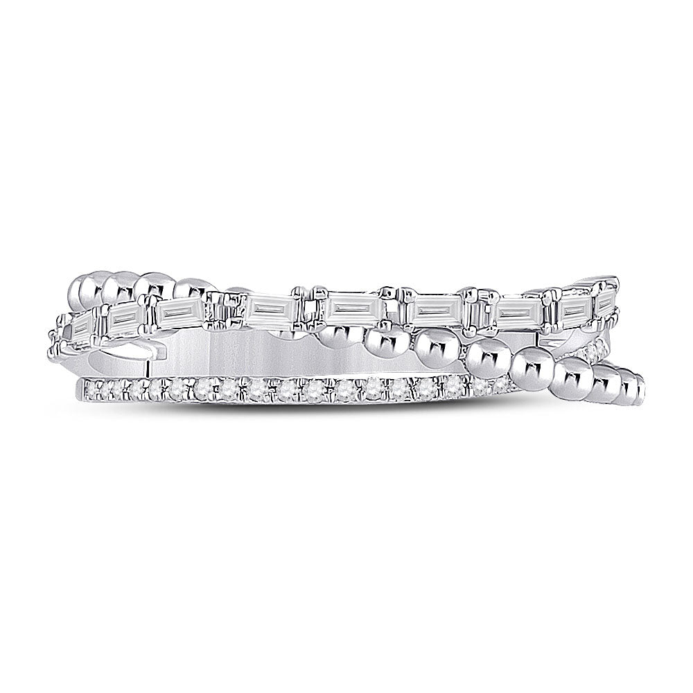 Keene Jewelers 14kt White Gold Womens Baguette Diamond Crossover Band Ring 1/3 Cttw