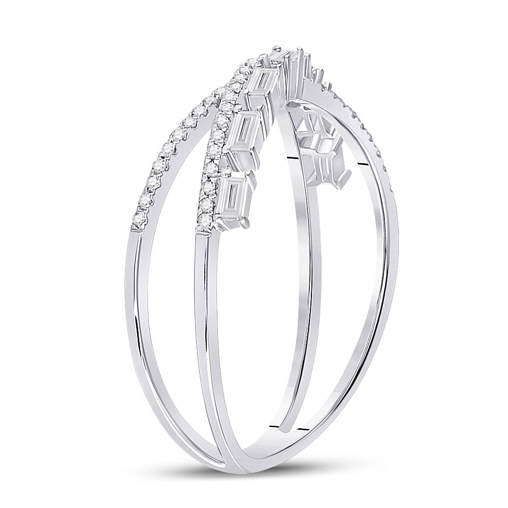 Keene Jewelers 14kt White Gold Womens Baguette Diamond Crossover Band Ring 1/4 Cttw