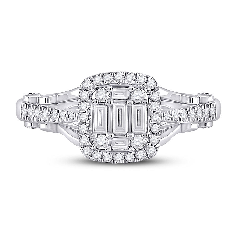 Keene Jewelers 14kt White Gold Womens Baguette Diamond Square Cluster Ring 1/2 Cttw