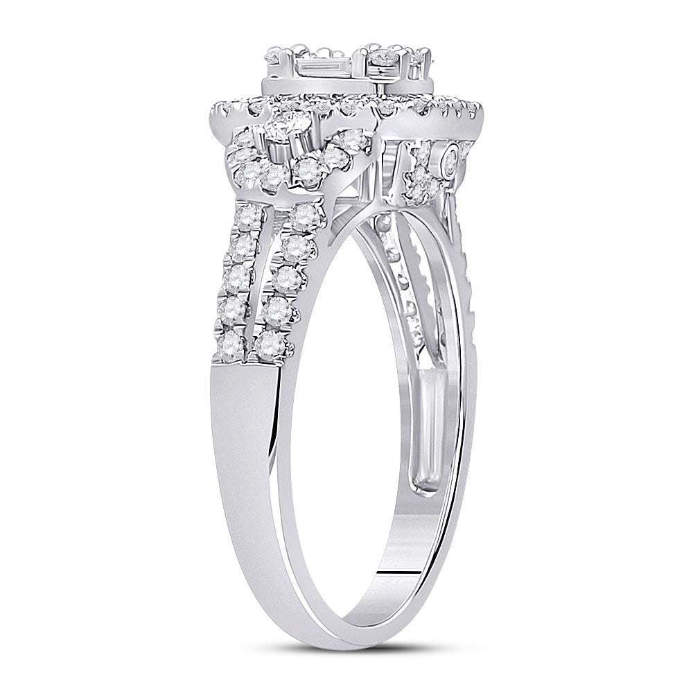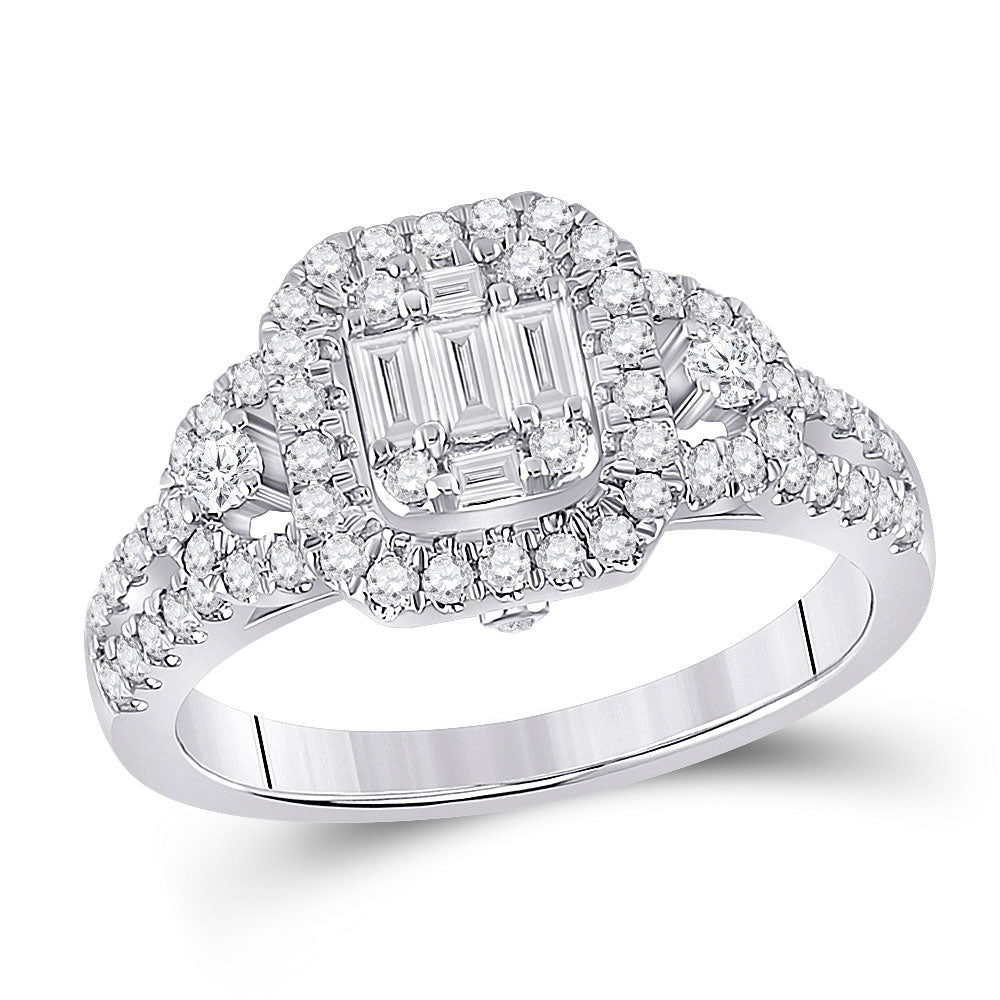 Keene Jewelers 14kt White Gold Womens Baguette Diamond Square Cluster Ring 3/4 Cttw