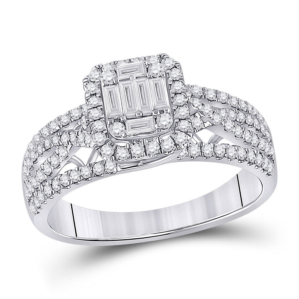 Keene Jewelers 14kt White Gold Womens Baguette Diamond Square Cluster Ring 3/4 Cttw
