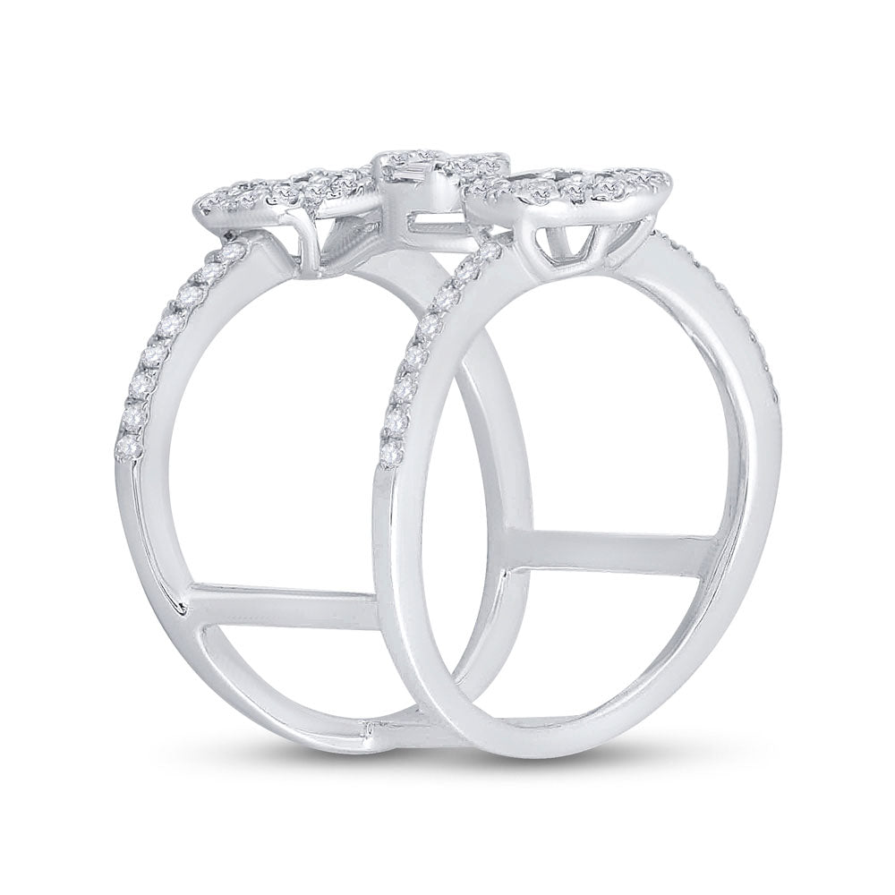 Keene Jewelers 14kt White Gold Womens Round Blue Sapphire Diamond Negative Space Band Ring 1 Cttw
