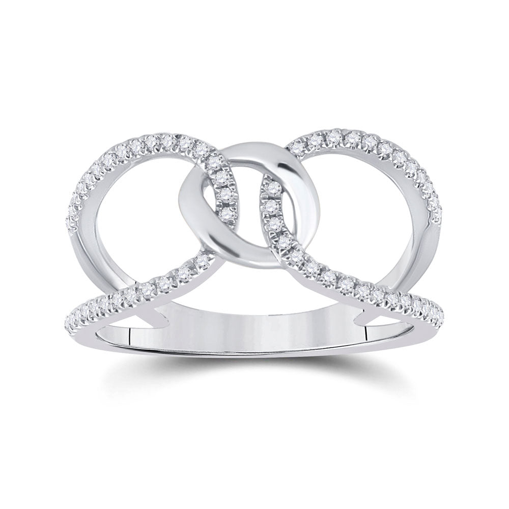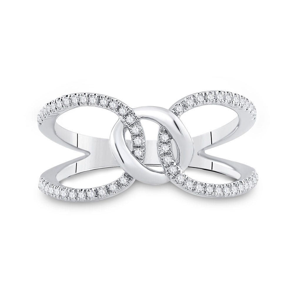 Keene Jewelers 14kt White Gold Womens Round Diamond Negative Space Link Fashion Ring 1/6 Cttw