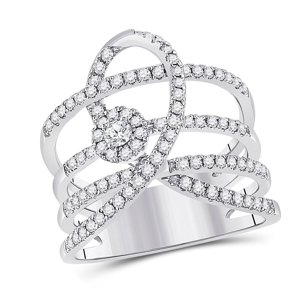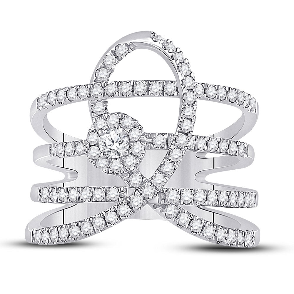 Keene Jewelers 14kt White Gold Womens Round Diamond Spiral Strand Fashion Ring 3/4 Cttw