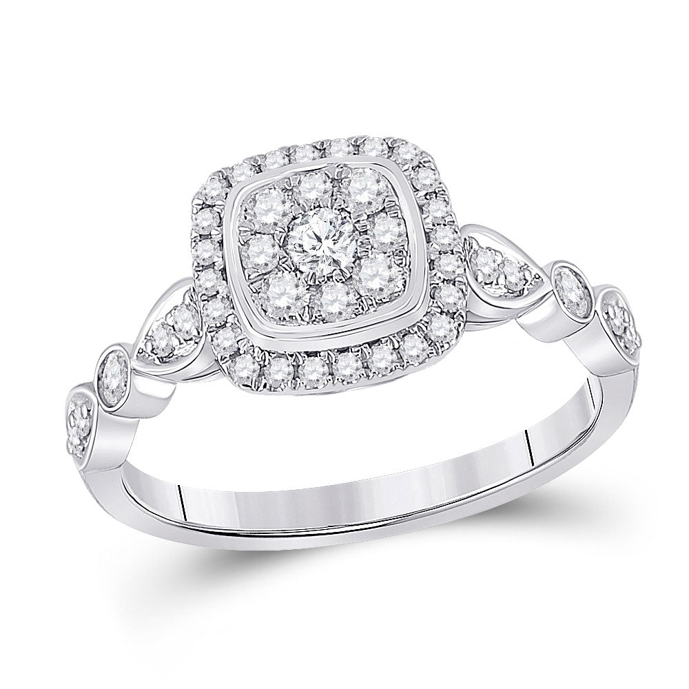 Keene Jewelers 14kt White Gold Womens Round Diamond Square Cluster Ring 1/2 Cttw