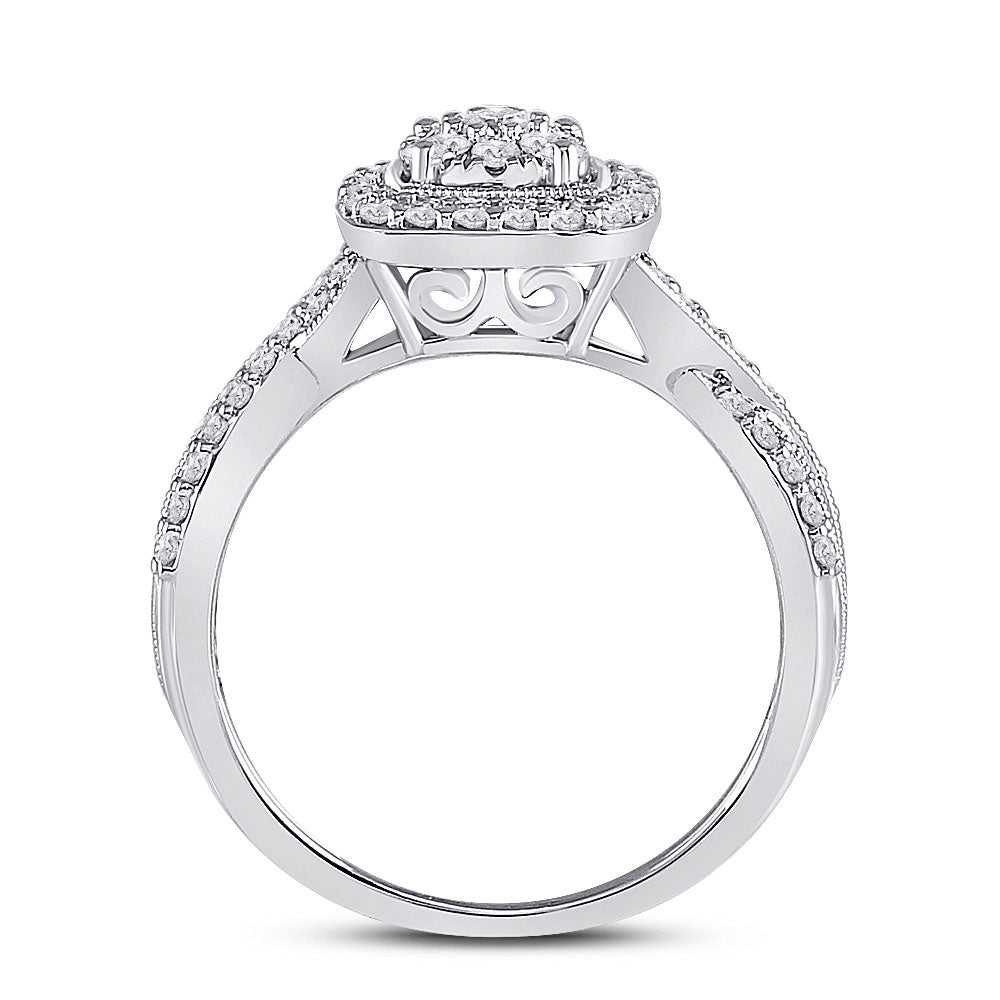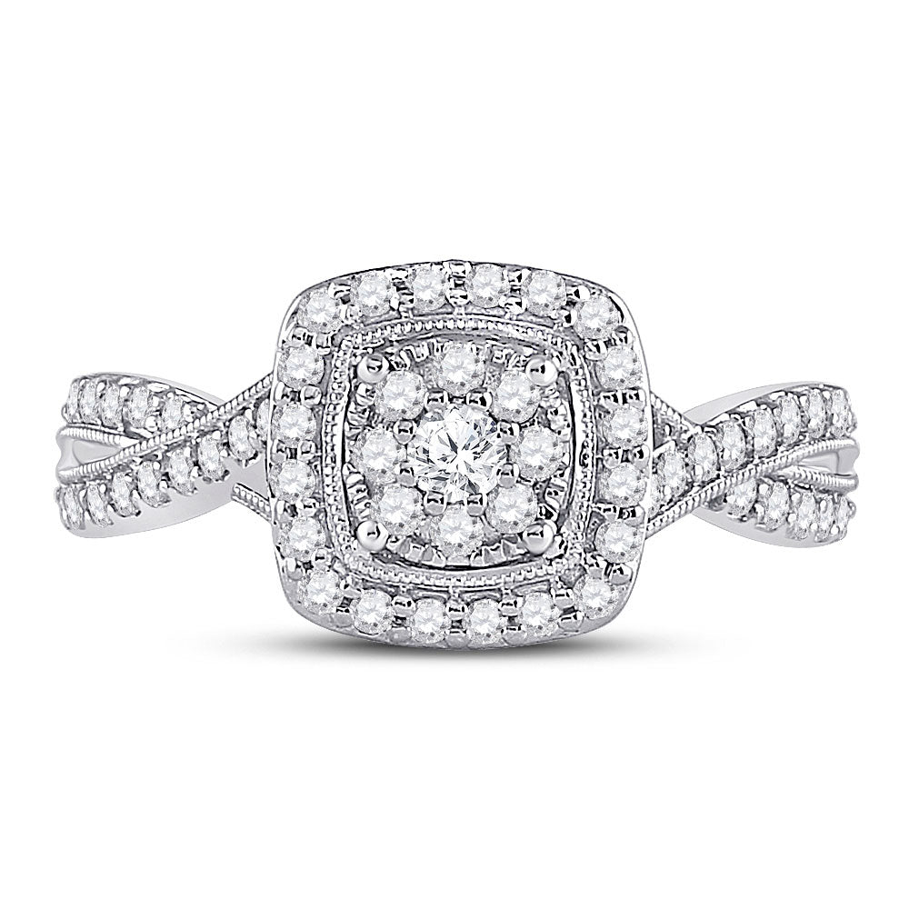 Keene Jewelers 14kt White Gold Womens Round Diamond Square Cluster Ring 1/2 Cttw