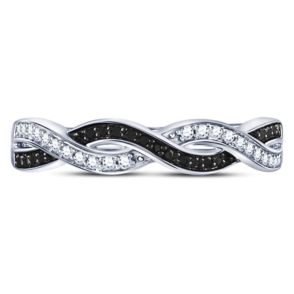 Keene Jewelers Sterling Silver Womens Round Black Color Enhanced Diamond Woven Band Ring 1/6 Cttw