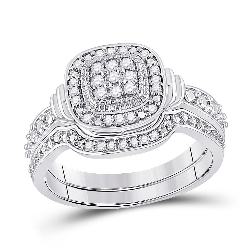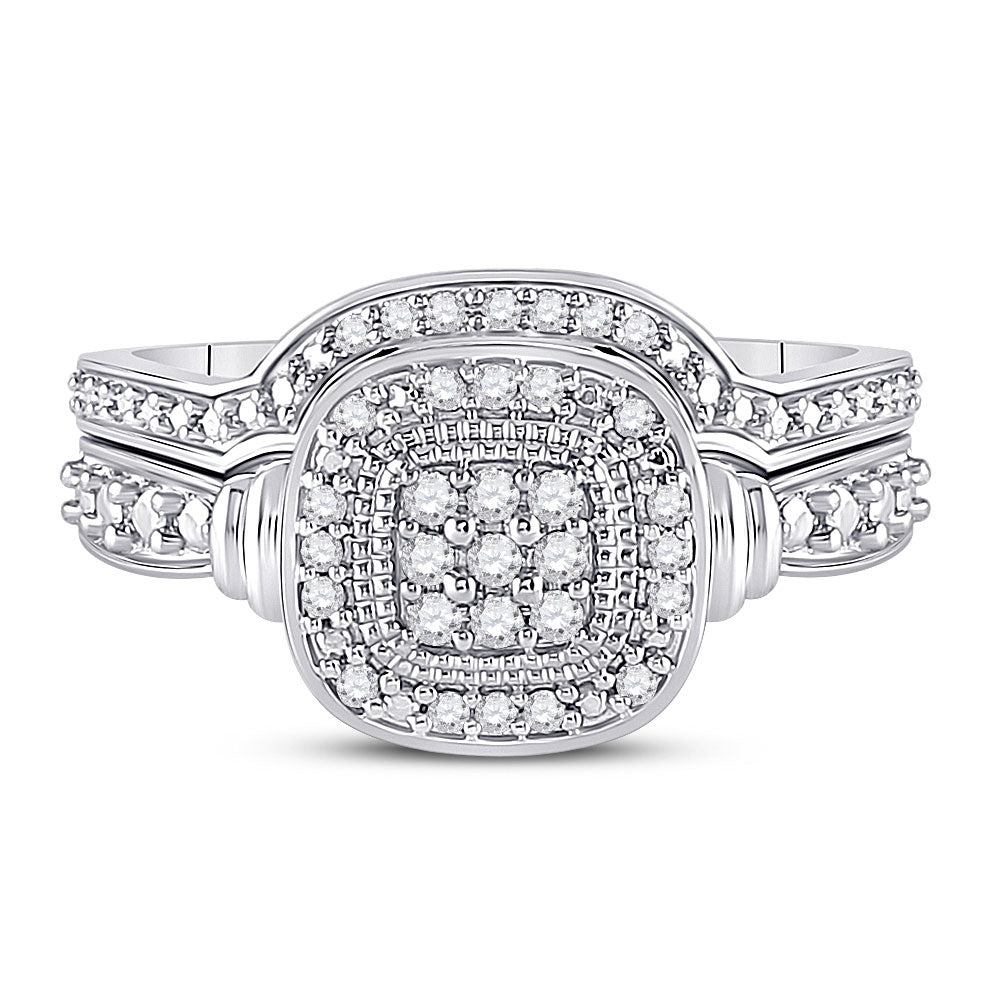 Keene Jewelers 10kt White Gold Round Diamond Square Bridal Wedding Ring Band Set 1/5 Cttw