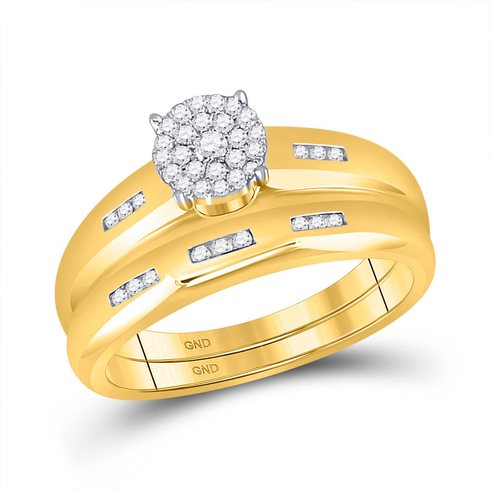 Keene Jewelers 10kt Yellow Gold His Hers Round Diamond Cluster Matching Wedding Set 1/3 Cttw