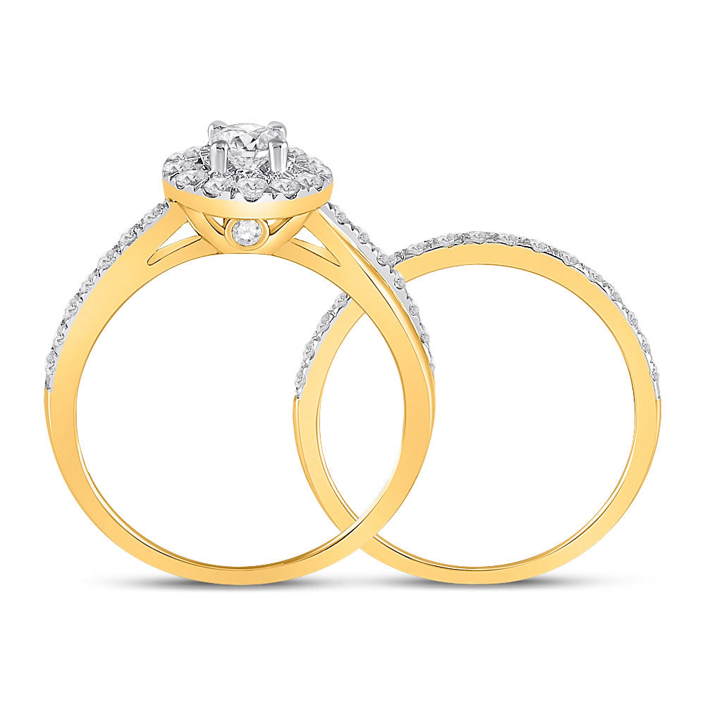 Keene Jewelers 10kt Yellow Gold Round Diamond Bridal Wedding Ring Band Set 1 Cttw