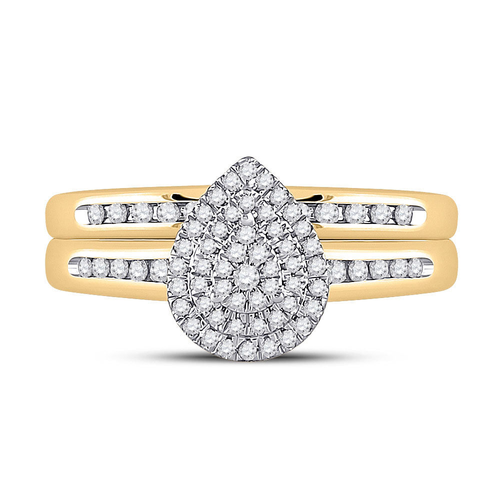 Keene Jewelers 10kt Yellow Gold Round Diamond Pear Bridal Wedding Ring Band Set 1/3 Cttw