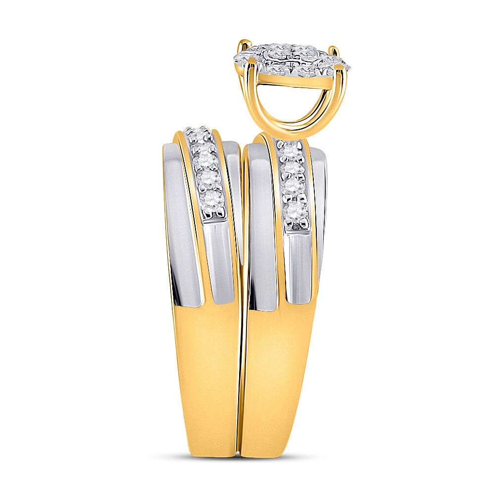 Keene Jewelers 14kt Two-tone Gold His Hers Round Diamond Cluster Matching Wedding Set 3/4 Cttw