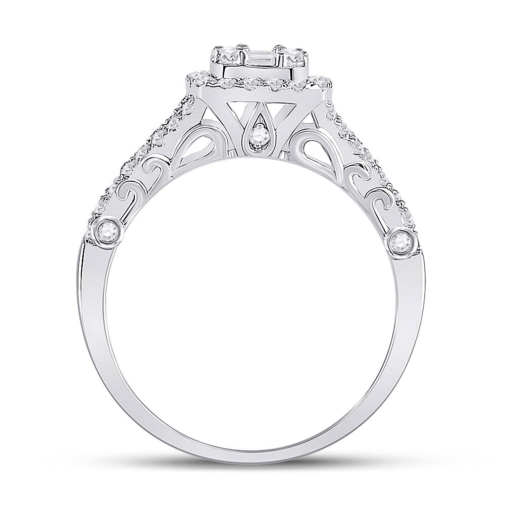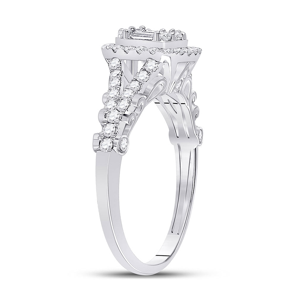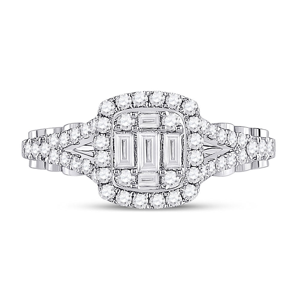 Keene Jewelers 14kt White Gold Baguette Diamond Cluster Bridal Wedding Engagement Ring 5/8 Cttw