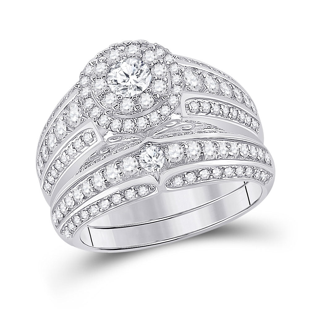 Keene Jewelers 14kt White Gold His Hers Round Diamond Halo Matching Wedding Set 2-1/3 Cttw