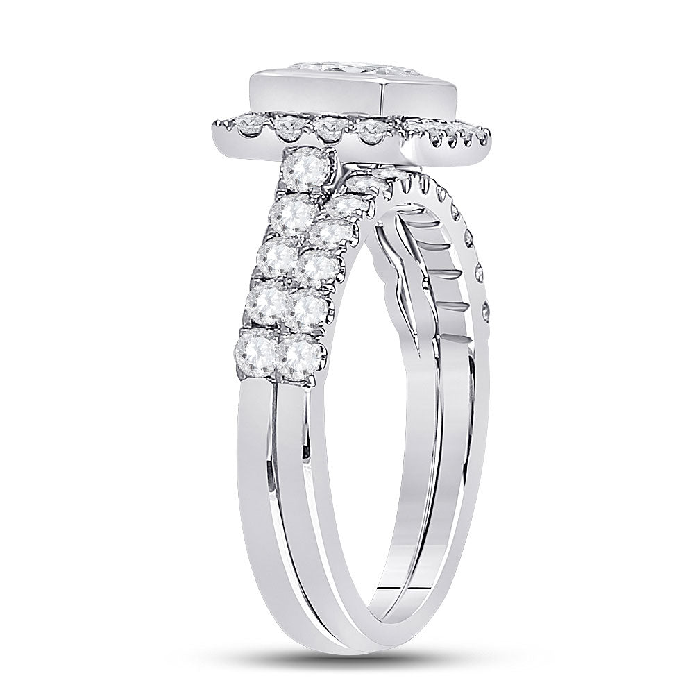 Keene Jewelers 14kt White Gold Princess Diamond Bridal Wedding Ring Band Set 2 Cttw